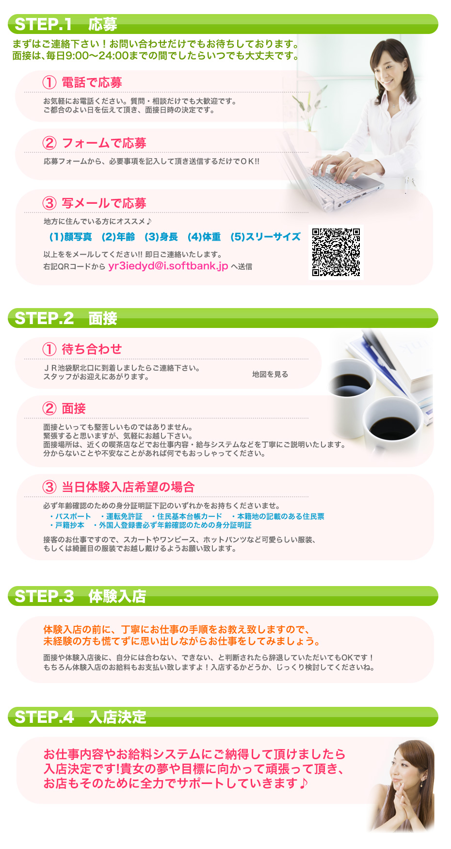 |店内写真|お仕事体験談|地方から来られる方へ|18歳〜29歳の方へ|23歳〜38歳の方へ|
