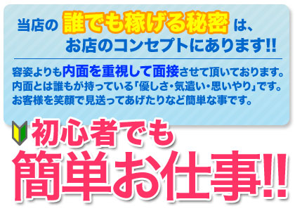 未経験の女の子はこういったお店に怖いイメージをもっている子も多いと思いますが、当店の雰囲気はとても明るく、怖い雰囲気のスタッフやノルマや罰金などはありませんのでご安心ください!